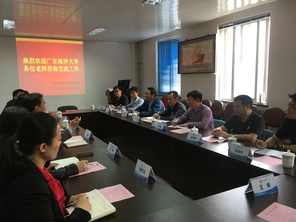 2017年5月9日,广东海洋大学水产养殖系系主任刘志刚、海洋生物系系主任丁燏一行9人来我院进行教学科研交流。学院领导班子、办公室、相关专业负责人及教师代表与来访嘉宾进行了座谈交流。