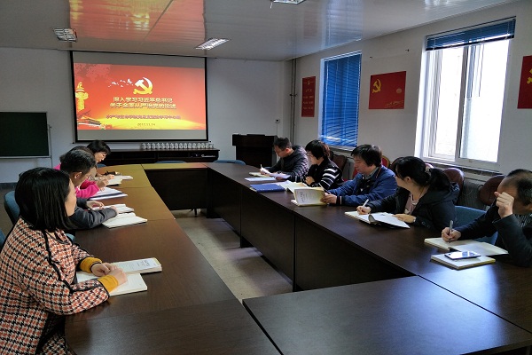 11月14日,tyc122cc太阳成集团党总支理论学习中心组在学院会议室开展“深入学习习近平总书记关于全面从严治党的重要论述”专题学习研讨,学院党总支理论学习中心组全体成员、各支部书记参加学习,党总支书记邱金英主持学习。