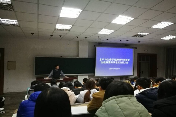 2017年12月27至28日,tyc122cc太阳成集团团委分别在黄、渤海两个校区召开期末考风考纪暨假前安全教育大会,黄海校区大会由学院团委书记陈曦主讲、渤海校区大会由学院辅导员孟丽婷主讲,学院四个年级近千名学生参加。