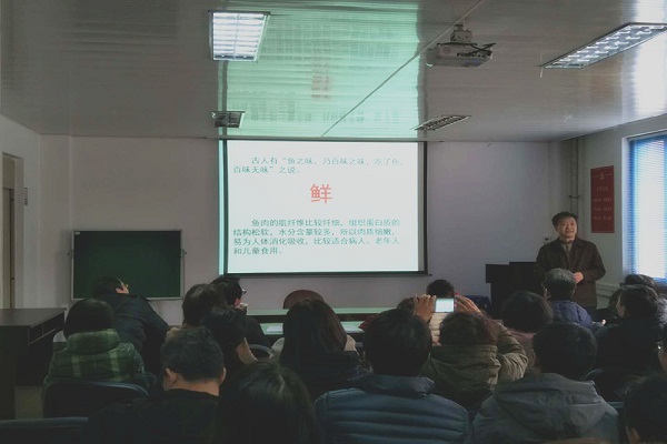 3月7日,为迎接第108个妇女节来临,tyc122cc太阳成集团邀请姜志强教授为全院教师举办了一场《鱼类》讲座,同时为学院“2018年海洋水产科普知识系列讲座”拉开了序幕。姜志强教授从“鱼之味,乃百味之味”开始讲起,分别向大家介绍了海水、淡水野生鱼、养殖鱼等几百种鱼类的特点,营养成分,肉质味道,烹饪方法等。姜志强教授还针对不同鱼类的烹饪方法与女教师进行了深入互动,他的讲座生动趣味,台下笑声不断,提问踊跃。本次讲座是学院“2018年海洋水产科普知识系列讲座”的首讲,今后还将继续邀请行业内知名专家学者为师生进行海洋水产类讲座,加深师生对水产知识的了解,增强水产教师的专业知识,提升授课水平。