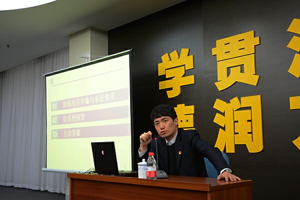 讲座上,孙伟鹏分别介绍了电信诈骗、非法集资和校园贷等内容,通过典型的案例让师生们了解校园贷及网络借贷中的内幕、网络诈骗的惯用手法和作案方式,生动形象地展现校园贷给学生以及学生家庭带来的严重危害。