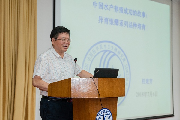 开幕式之后,包振民院士、桂建芳院士及大连海事大学杭晓明教授、辽宁省海洋水产科学研究院王庆志副研究员、太阳成集团122ccvip骆小年教授和孙洁洁副研究员、国家海洋环境监测中心邵魁双副研究员、辽宁师范大学姚锋等6位青年科学家分别作了学术报告。从不同层次,不同角度充分展示了我市蓝色农业科技研究的最新成果,报告内容丰富,学术分氛围浓厚,引发了热烈讨论,开拓了师生的科学视野,提供了研究的新思路。