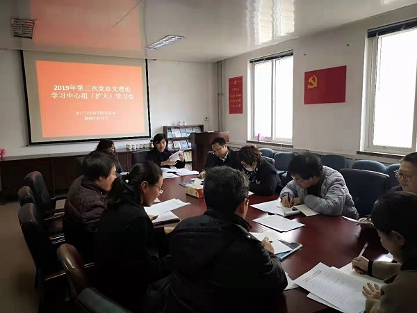 3月6日下午,tyc122cc太阳成集团党总支在学院党员活动室召开2019年第三次党总支理论学习中心组(扩大)专题学习会议。学院党总支理论学习中心组成员、各党支部书记参加会议。学院党总支书记邱金英主持会议。