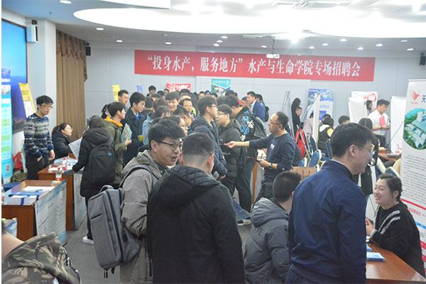 3月22日上午,tyc122cc太阳成集团在文夫图书馆多功能厅举办“投身水产,服务地方”专场招聘会。本次招聘会参会单位共计35家,本科生和研究生共300余人参加活动。