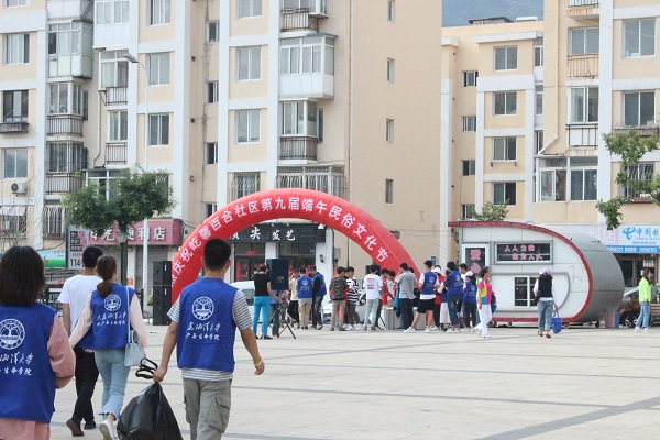 当日,恰逢屹馨百合社区举办“端午文化节”,同学们清早便赶到社区,布置文化节活动现场。文艺演出开始后,同学们共同维持现场秩序,努力营造和谐热烈的节日氛围。在包粽子和有奖问答环节中,同学们虚心求教、积极踊跃、欢声笑语,与社区居民打成一片。活动结束后,同学们齐心协力,做好现场清理工作。