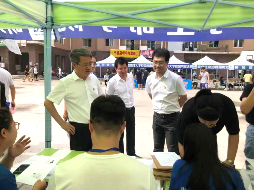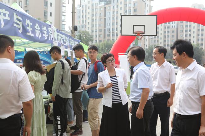 校党委书记姚杰、校长宋林生亲临我院迎新现场指导工作并与新生亲切交谈,我院党总支书记邱金英、党总支副书记兼纪检委员衣启麟介绍我院迎新工作开展情况。