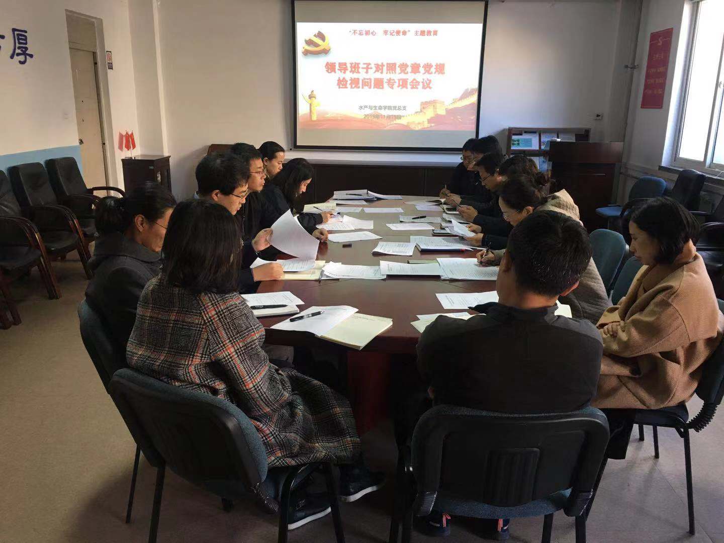 11月15日,tyc122cc太阳成集团在党员活动室召开领导班子对照党章党规检视问题专项会议。校“不忘初心、牢记使命”主题教育第二巡回指导组成员丁立华、学院领导班子成员、各党支部书记参加会议,会议由学院党总支书记邱金英主持。