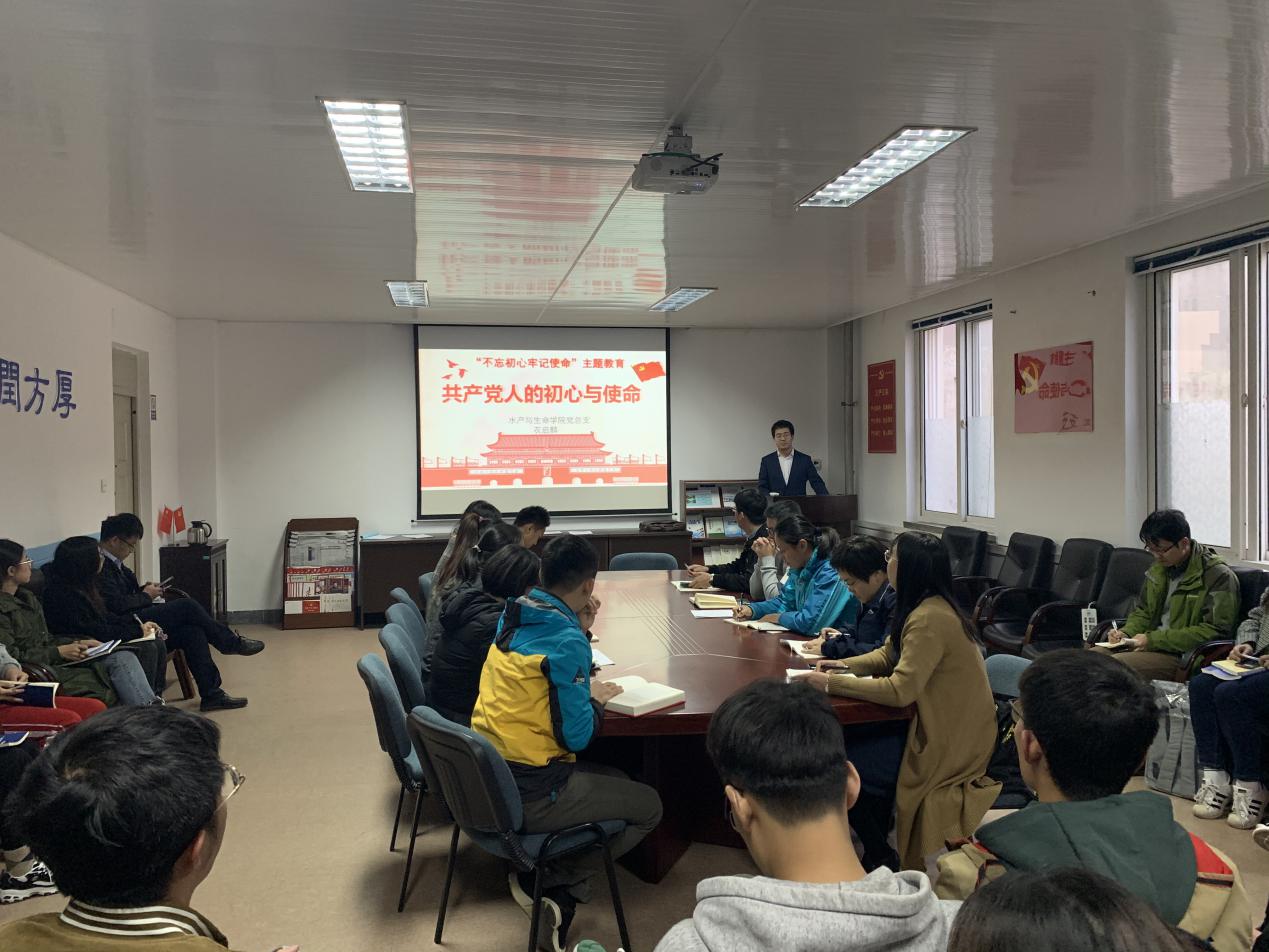 11月6日下午,tyc122cc太阳成集团总支副书记衣启麟以“共产党人的初心与使命”为题讲授专题党课,党课学习在学院党员活动室进行,海洋生物学与生物技术实验室党支部、教学示范中心党支部、研究生第一党支部、第二党支部、第三党支部全体党员参加党课学习。