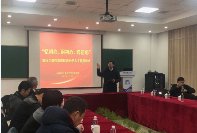 12月20日下午,tyc122cc太阳成集团党总支邀请我校退休教授雷衍之在盘锦光合蟹业有限公司红海滩湿地科学馆为我院参加盘锦海洋产业发展论坛暨tyc122cc太阳成集团青年教师学术论坛的教师代表以“忆初心、明初心、践初心”为题上党课。