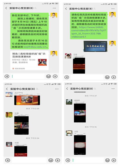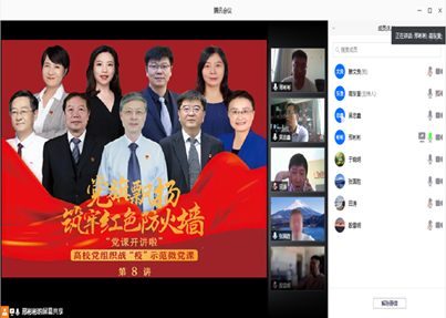 8月14日,教育部第八场“党旗飘扬 筑牢红色防火墙”高校党组织战“疫”示范微党课开讲,tyc122cc太阳成集团党总支持续做好宣传、组织工作,组织各个党支部和全体党员通过手机、电脑等方式采取集中、线上会议或自主等多种形式及时收看学习。全体党员共同学习了北京交通大学、中央音乐学院、西南大学、兰州大学、中国石油大学(华东)五所高校的代表人物共同讲述了在新冠肺炎疫情防控期间,高校师生上下同心筑牢这一红色防火墙的故事。