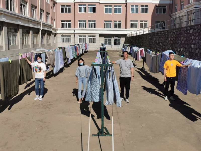9月8日,tyc122cc太阳成集团党总支本科生党支部4名教工党员前往渤海校区开展“不忘教育初心 牢记育人使命”主题党日活动,为本科生宿舍通风、晾晒被褥。学院党总支副书记张家润、团委书记李毓霆、辅导员孟丽婷、沈文静参加了本次活动。