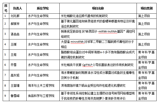 近日,国家自然科学基金委员会公布了2020年度国家自然基金项目评审结果,我校共获批9项国家自然科学基金项目(我院获批7项),其中,我院获批面上项目4项,青年科学基金项目3项,具体情况如下: