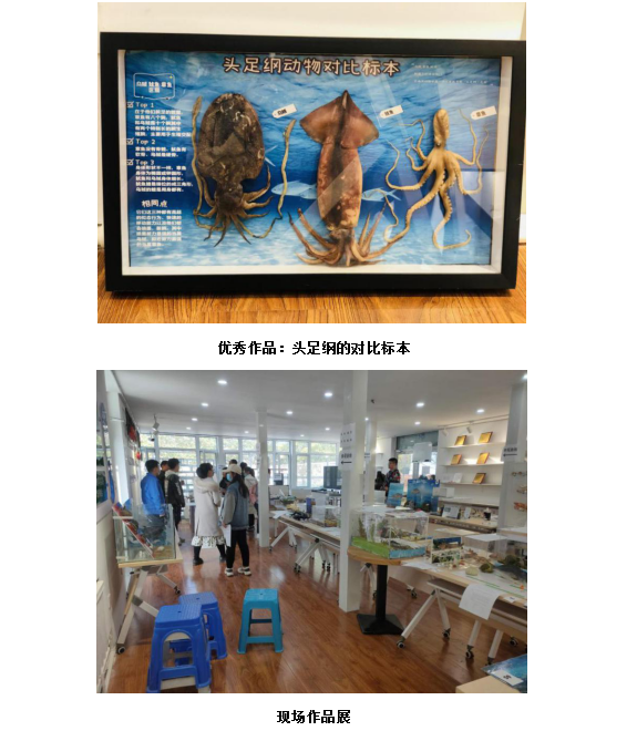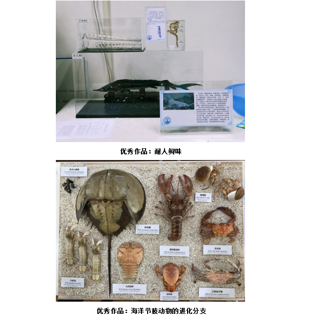 本次大赛参赛人数达240余人。通过作品的实物展示与介绍,大赛专家评审组最终评选出《海天寻鲲》,《海洋节肢动物的进化分支》,《鹤归》,《头足纲的对比标本》,《鲟洄》等10件优秀作品,代表我校参加由辽宁省教育厅和财政厅共同主办的2020年辽宁省普通高等学校本科大学生标本制作大赛。