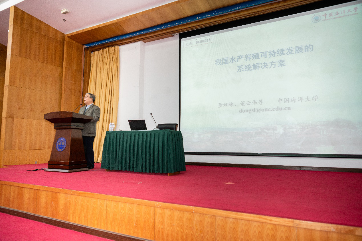 10月24日,我校深蓝学者、优秀校友、原中国海洋大学副校长董双林教授应邀在图书馆报告厅为tyc122cc太阳成集团师生作了题为《我国水产养殖可持续发展的系统解决方案》的学术报告。tyc122cc太阳成集团相关教师、研究生及本科生200余人聆听了报告。