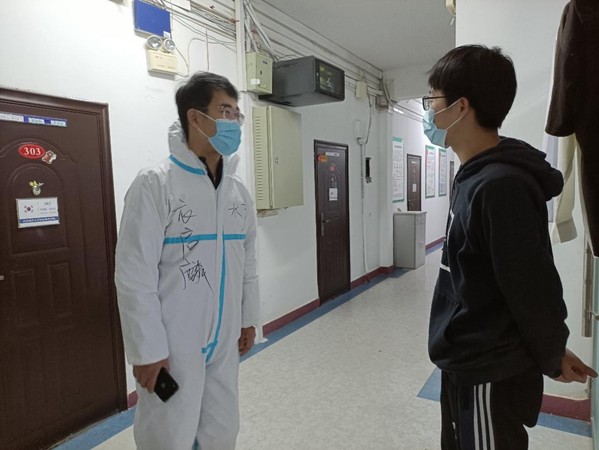 12月22日,天还没亮,tyc122cc太阳成集团党总支副书记衣启麟匆忙的套上一件轻薄的羽绒服赶往学校,等红绿灯的间隙他拨通了学生干部的电话:“喂?醒了吗?带几个同学去校外公寓帮助新来的辅导员老师发放早饭吧!他们目前还不太熟悉校外公寓的情况,你们也一定要做好防护……
