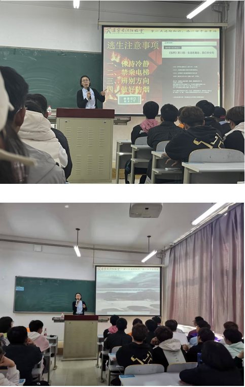 10月28日,tyc122cc太阳成集团在渤海校区二教107教室举办消防安全知识讲座。学院2021级学生参加,会议由辅导员张新主持,特邀辽宁省消防协会科普教育工作委员会常秀菊教员主讲。