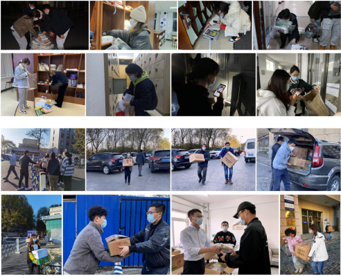 活动中,校内管理区丁君副院长(主持工作)、沈文静老师带领的研究生、本科生志愿者团队将学院2018级57名学生滞留在校内图书馆、獐子岛教学楼、养殖楼内的复习资料、笔记本电脑等个人物品总计800余件物品通过电话或视频进行联系一一对接、清点、整理、打包封存。邱金英书记带领的疫情防控志愿者教师团队的王伟老师、郝振林老师、马德友老师、薛壮老师、韩冰老师分批将物品安全运送至大学生公寓并进行消杀。大学生公寓管理区韩雨哲副院长、卢星宇老师带领公寓志愿者一一将物品发放至每名同学手中。