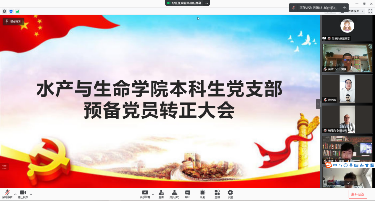 11月24日,tyc122cc太阳成集团党总支本科生党支部通过腾讯会议线上方式召开预备党员转正大会,支部全体党员参加此次会议,会议由本科生党支部书记李毓霆主持。