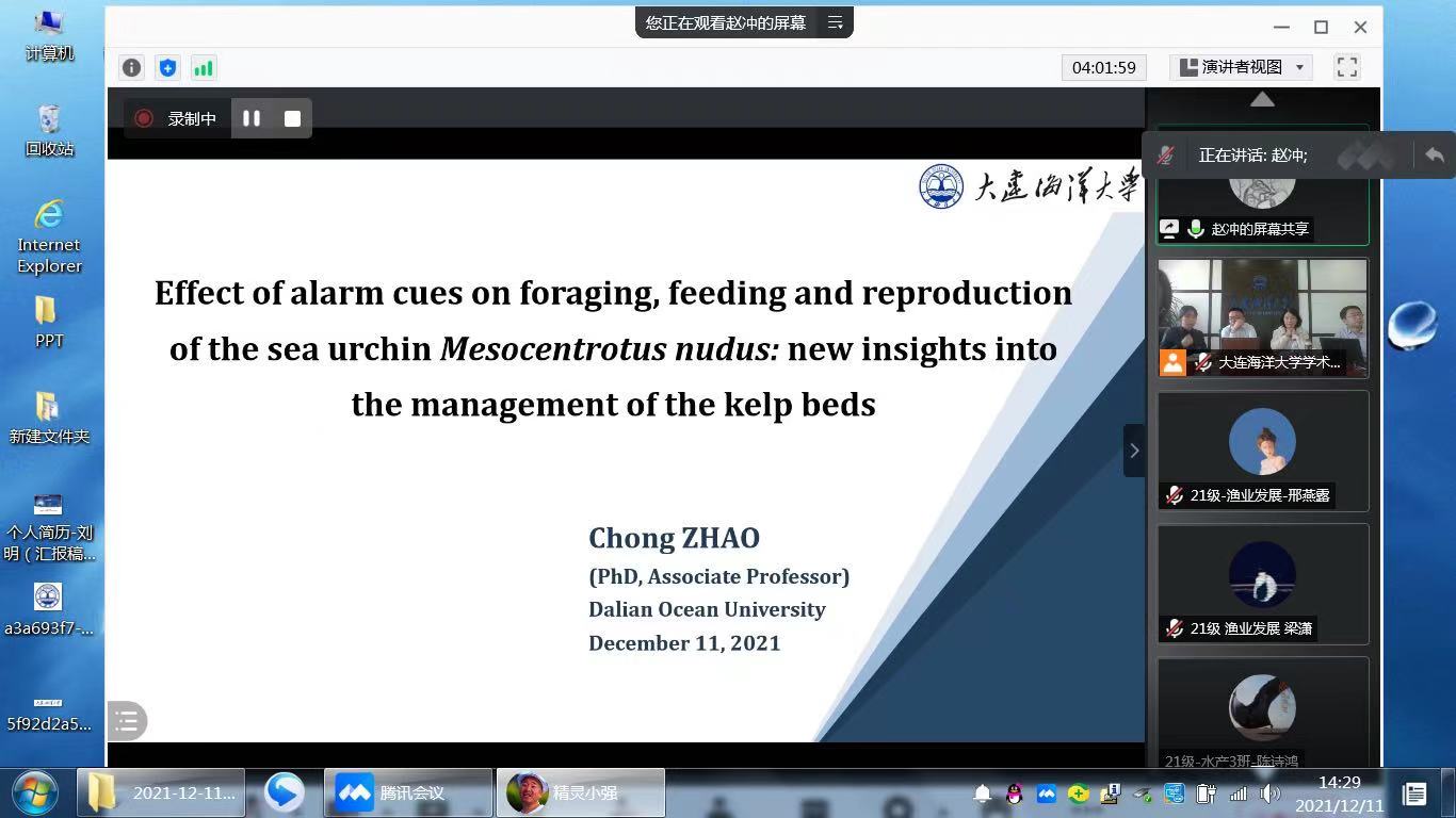 本次会议特别邀请了8名国内知名中青年专家学者做学术报告,学院3名优秀青年教师进行了学术交流。报告涉及T细胞免疫的起源与演化的研究、海洋贻贝附着分子机制的研究、现代化海洋牧场构建与产业融合发展的研究、坛紫菜耐高温品种的选育及高温应答机理的研究、鱼类肌间刺发育机制及团头鲂育种实践的研究、刺参非典型NLRC4调控灿烂弧菌吞噬的分子机制的研究、扇贝性状调控机制解析与良种培育的研究、海洋贝类高温生理适应机制的研究、警报信号对海胆觅食、摄食和繁殖的影响、免疫防御酶的研究、北黄海贝类养殖海区细菌群落结构特征与预警的研究等多方面内容。报告内容丰富精彩,涉及水产领域多方面最新研究进展。大家踊跃发言、深入交流,各位专家学者耐心解答了参会师生提出的问题,将会议推向高潮。