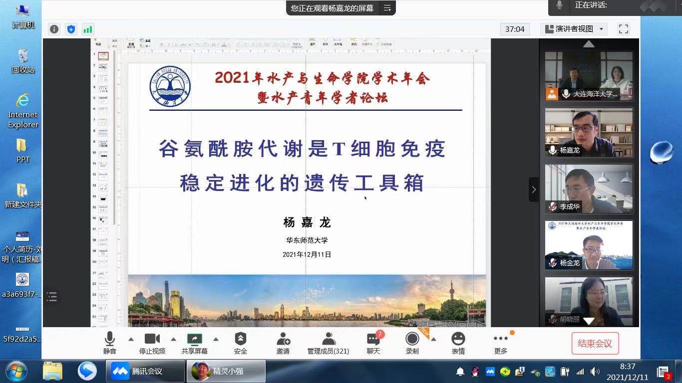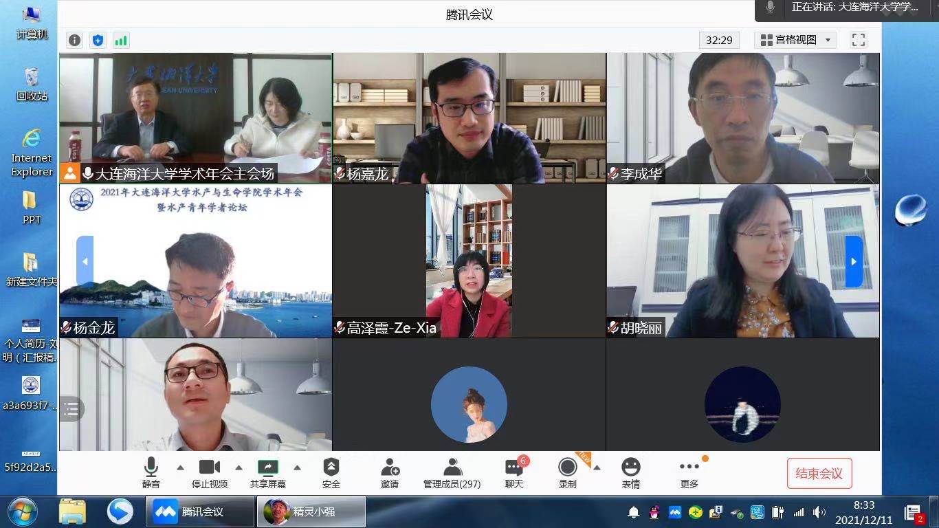 12月11日,2021年tyc122cc太阳成集团学术年会暨水产青年学者论坛如期举行。为贯彻落实新冠肺炎疫情防控要求,会议采取线上线下相结合形式进行。太阳成集团122ccvip党委副书记、校长宋林生教授、中国海洋大学董云伟教授、集美大学副校长谢潮添教授、华中农业大学高泽霞教授、宁波大学李成华研究员、华东师范大学杨嘉龙教授、中国海洋大学胡晓丽教授、上海海洋大学杨金龙教授、中国科学研究院海洋研究所张立斌研究员和全国水产科研工作者、研究生400余人参加了会议,tyc122cc太阳成集团副院长(主持工作)丁君主持会议。