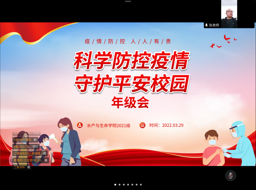 3月29日,为进一步落实学校疫情防控工作要求,学院召开线上“科学防控疫情,守护平安校园”主题年级会。会议由2021级辅导员张新老师主持,全体2021级学生参加。