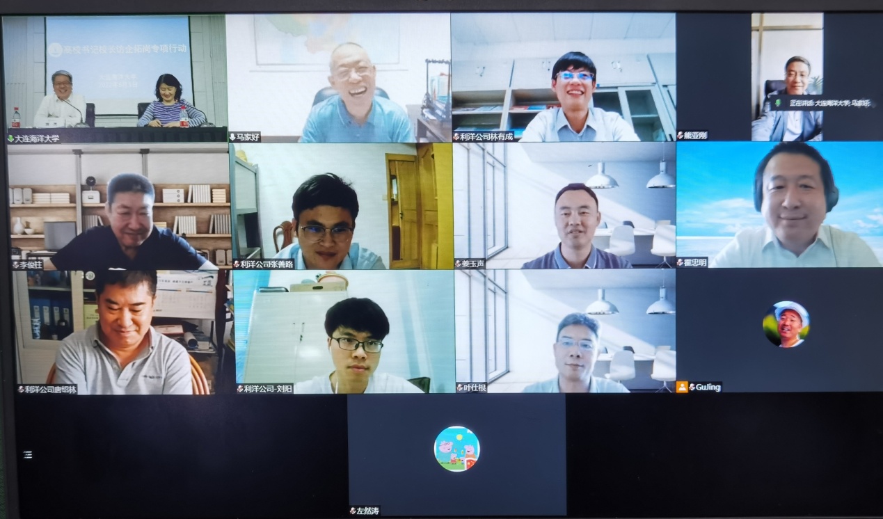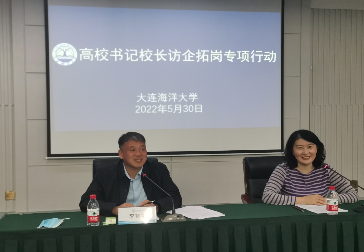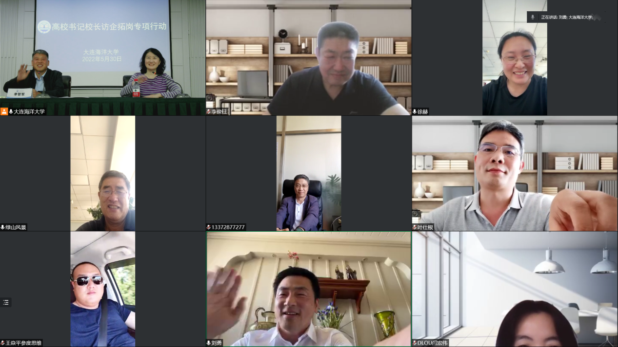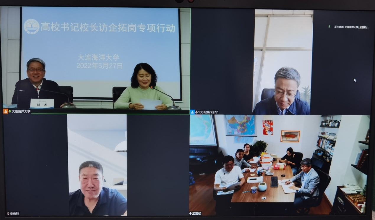 为持续推进教育部关于高校书记校长访企拓岗工作,认真落实省教育厅的具体工作要求,5月27日和6月1日,党委书记姚杰在黄海管理区与我校校友大连天正实业有限公司董事长孟雪松、广州利洋水产科技股份有限公司董事长马家好举行访企拓岗视频会谈;5月27日和5月30日,党委副书记、校长宋林生在渤海管理区与我校校友威海兴亚船务有限公司总经理葛平刚、大连圣亚旅游控股股份有限公司副总裁刘友林举行线上线下结合访企拓岗活动;5月30日,副校长李智军在黄海管理区与辽宁省海洋水产养殖协会副会长侯彧举行食品会谈。活动由学院组织,会谈由学院副院长(主持工作)丁君主持。