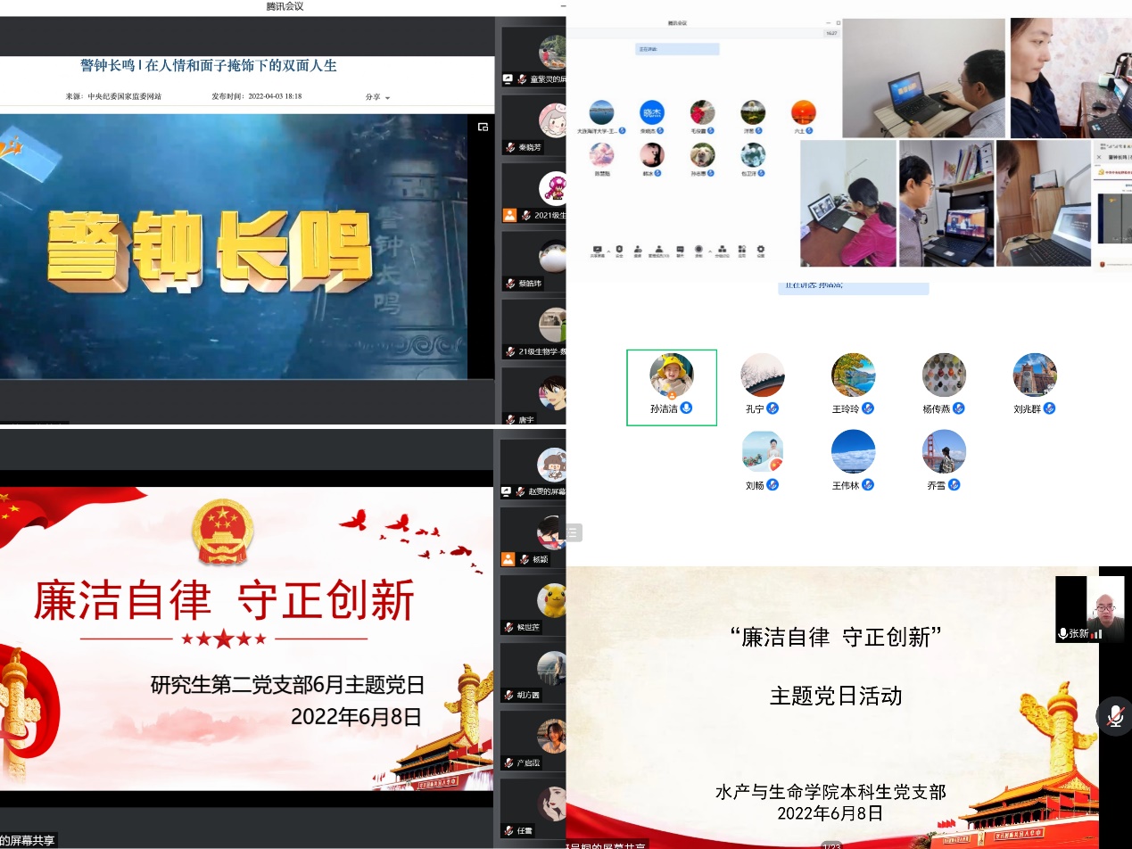 6月8日,tyc122cc太阳成集团党总支组织学院各党支部在线上开展了六月份“廉洁自律 守正创新”主题党日活动,学院全体党员参加。
