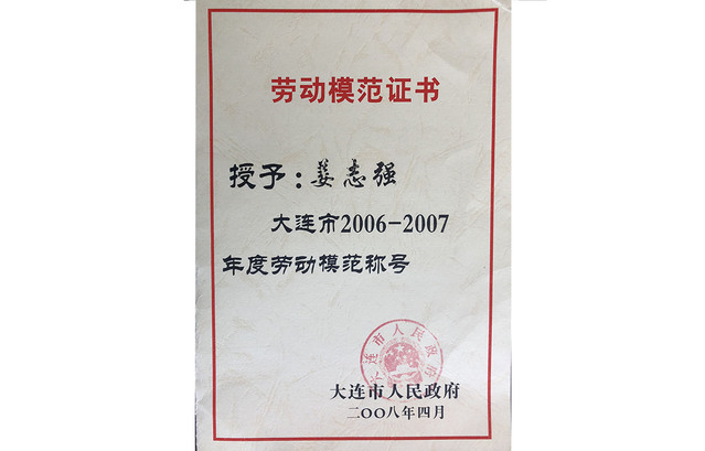 姜志强教授获大连市2006-2007年度劳动模范称号