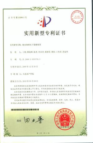 (3)人工鱼礁的星形辐射状配置方法,ZL 2009 1 0249031.X。