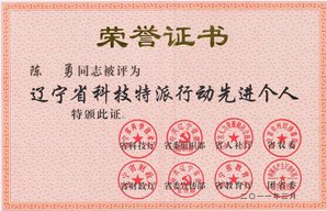 辽宁省科技特派先进个人,2011年