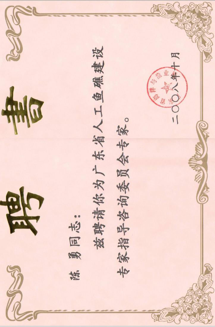 陈勇教授2000年开始从事海洋牧场方面的科技研发和示范推广工作,先后承担了国家、省、市、企业有关海洋牧场的科研项目,2008年在国内率先创建了海洋牧场科技研发平台——“辽宁省海洋牧场技术工程中心”以及海洋牧场科技创新团队。