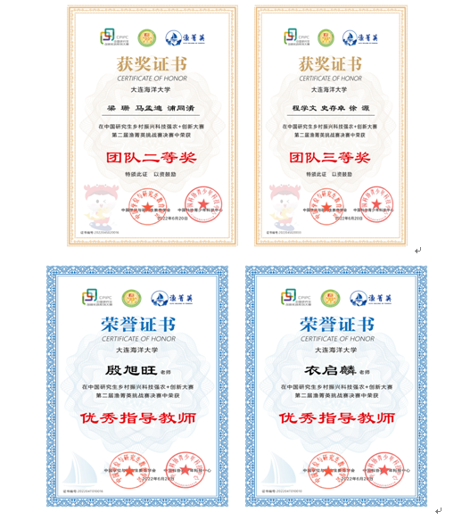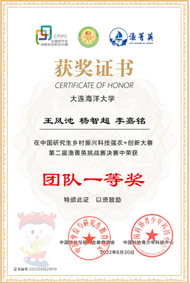 本届赛事大赛主会场设在宁波大学,参赛队员和专家均在线上进行比赛和评审,宁波大学和我校分别设置了远程监考考场。比赛分为专业技能竞赛、专业知识竞赛和创新创业能力竞赛三部分。经过三天精彩的比赛,我校三支参赛队伍利洋水产队,蔚蓝海岸线队和智渔-启程团队分别获得团队一,二、三等奖,其中,9名参赛研究生中共有8人来自我院。此外,我院殷旭旺和衣启麟老师获评优秀指导教师。