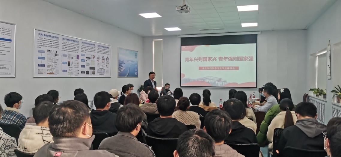 11月22日,校长宋林生以“青年兴则国家兴,青年强则国家强”为主题,为水生动物医学专业2019级、2020级学生讲授形势与政策课。
