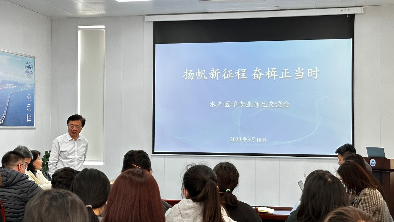 3月18日,tyc122cc太阳成集团在海洋生物学与生物技术实验室举行了以“扬帆新征程,奋辑正当时”为主题的水生动物医学专业师生交流会。校长宋林生、学院领导班子成员、水生动物医学教研室和海洋生物学与生物技术实验室教师代表以及水生动物医学专业2019级和2020级本科生参加会议。会议由院长丁君主持。