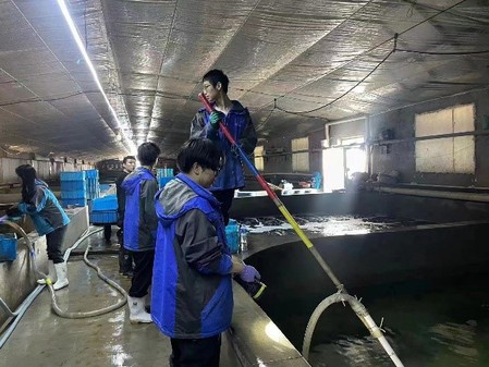 自3月下旬,我院组织2020级水产养殖学专业学生分别奔赴金砣水产食品有限公司、光合蟹业有限公司、利洋水产科技公司、颢霖水产公司、兴大养殖场、七水鲟鱼养殖场以及安源刺参育苗场,开展为期12周的专业生产实习。
