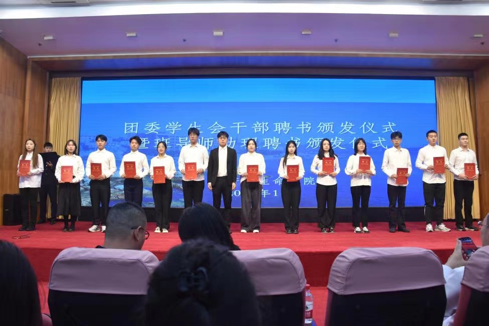 11月1日,tyc122cc太阳成集团于黄海校区图书馆报告厅举行团委学生会干部、班导师助理聘书颁发仪式。学院党委副书记王建东出席活动,学院全体辅导员及学生干部参加,活动由学院团委学生会主席马登浩主持。