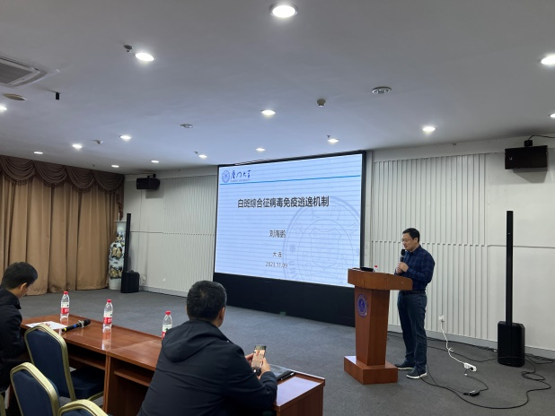 会上,李成华研究员作了“刺参消化道再生的细胞分子调控机制”的报告,以自身在水产领域中的科研实例,深入探讨了科研项目选题、申请书撰写及学术思想延续等问题。刘海鹏教授结合自己在“白斑综合征病毒免疫逃逸机制”研究中学术思想的开启、研究问题的探寻及解决方案的形成等各阶段经历,进行了详细的介绍与分析。两位专家与现场师生深入探讨了科研能力提升的方法与途径,并鼓励青年学者要多与科研同行交流,拓宽研究思路,逐渐建立起自己特色的研究方向,保持自信、热情的科研态度,持续发力以实现目标。