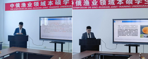 俄罗斯科学院远东分院副院长谢尔盖·伊万诺维奇·马斯列尼科夫教授分享了帝王蟹、海参、鱼类和藻类等海洋生物的研究进展。随后,学院的本科生和硕士研究生共8人作学术报告。20级本科生胡睿同和张家豪对壳聚糖酶的来源及壳寡糖在水产动物中的作用做了系统介绍。
