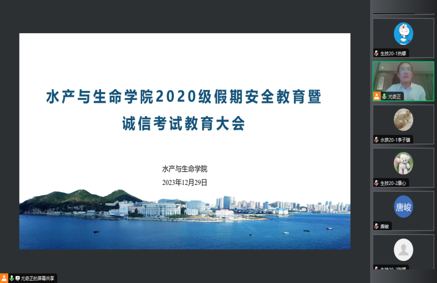 2020级辅导员尤奇正强调了离校前需在学工系统进行假期报备的填写,假期应注意安全,离校前做好寝室卫生。随后提醒学生们要诚信考试,遵守纪律。并且再次强调学生文明风貌问题,作为一名大学生应该有大学生的精神面貌。最后鼓励学生充分利用假期来丰富自己,为自己毕业之后做好打算。