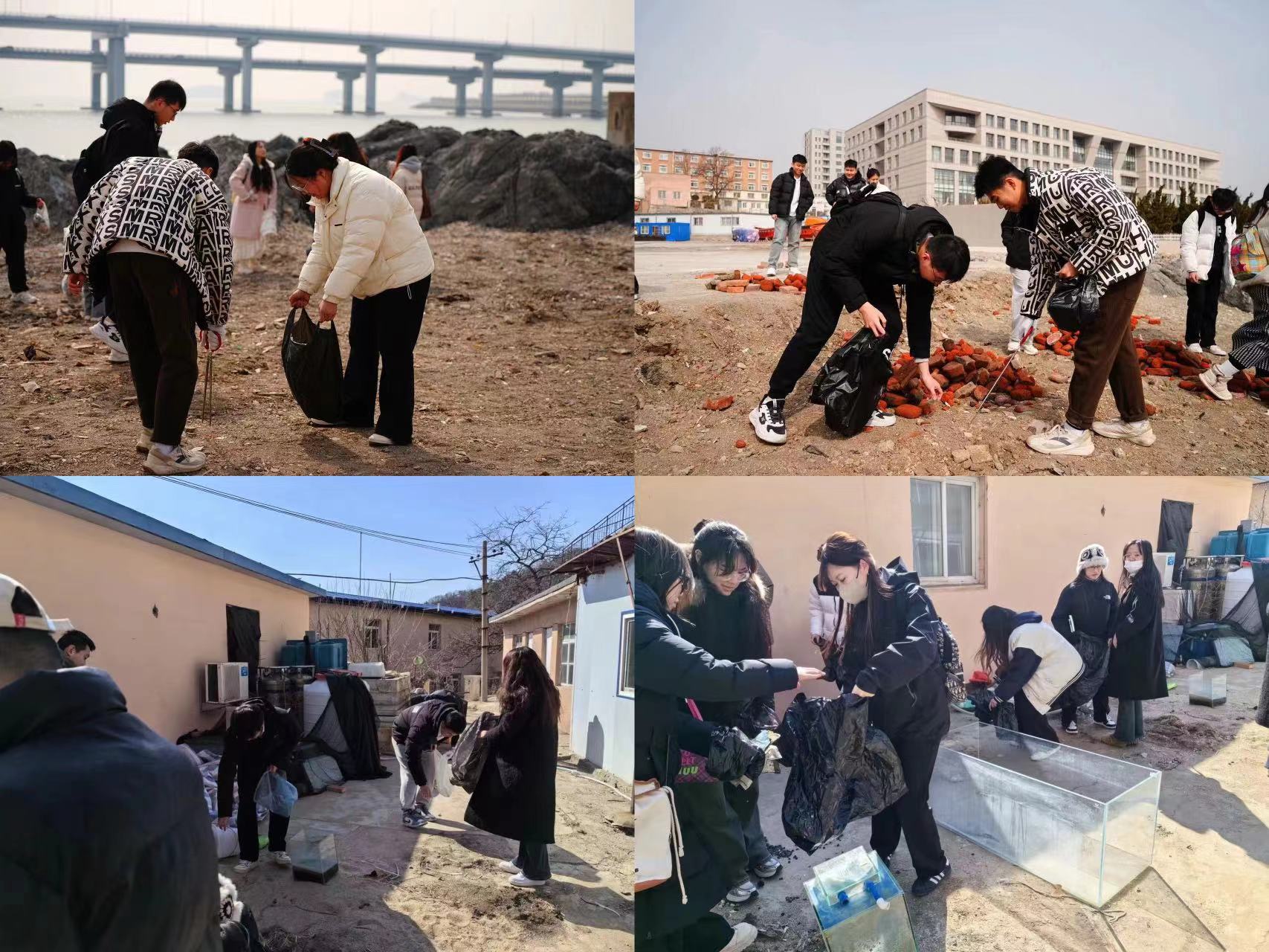 迎着海风与骄阳,志愿者们分别于5日、6日中午开启了海滩捡拾垃圾以及养殖实验室周边杂物的清理活动。志愿者们手持黑色垃圾袋等工具,投入到捡拾垃圾的环保活动中。志愿者们发扬不怕脏不怕累的精神,弯下腰细心地搜寻可以捡拾的垃圾。最终通过大家的相互合作,清理了海岸线以及实验室周边的垃圾。
