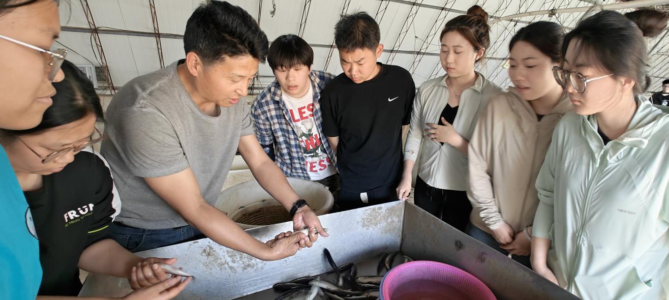 在盘锦光合蟹业有限公司和渔美康集团大洼实习点,叶仕根到对虾养殖车间、藻类培养车间和虾病检验室看望了水产养殖学和水生动物医学专业的实习同学,并和同学们进行了座谈,了解大家的实习生产和生活情况,提醒大家规范操作、安全生产,尤其注意涉水和用电安全。在辽宁兴大养殖场,水产养殖教研室主任骆小年现场指导到基地走访交流的水生动物医学专业同学进行亲鱼雌雄鉴别和挑选。叶仕根、骆小年和两个专业的同学进行了座谈,解答了同学们在生产实习中遇到的鱼类繁育和水产病害诊断问题,提醒同学们要树牢安全意识,筑牢安全防线,确保实习安全。