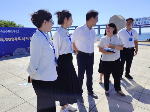 学院领导高度关注本次迎新工作,当天上午,学院院长丁君、党委书记关呈俊及其他班子成员莅临现场检查指导工作,领导们详细询问新同学们的报到情况,了解报到流程,并提出要坚持以学生为中心,用饱满的热情与热忱的心态迎接每一位新同学,同时对迎新志愿者表达了深切的关怀与问候。