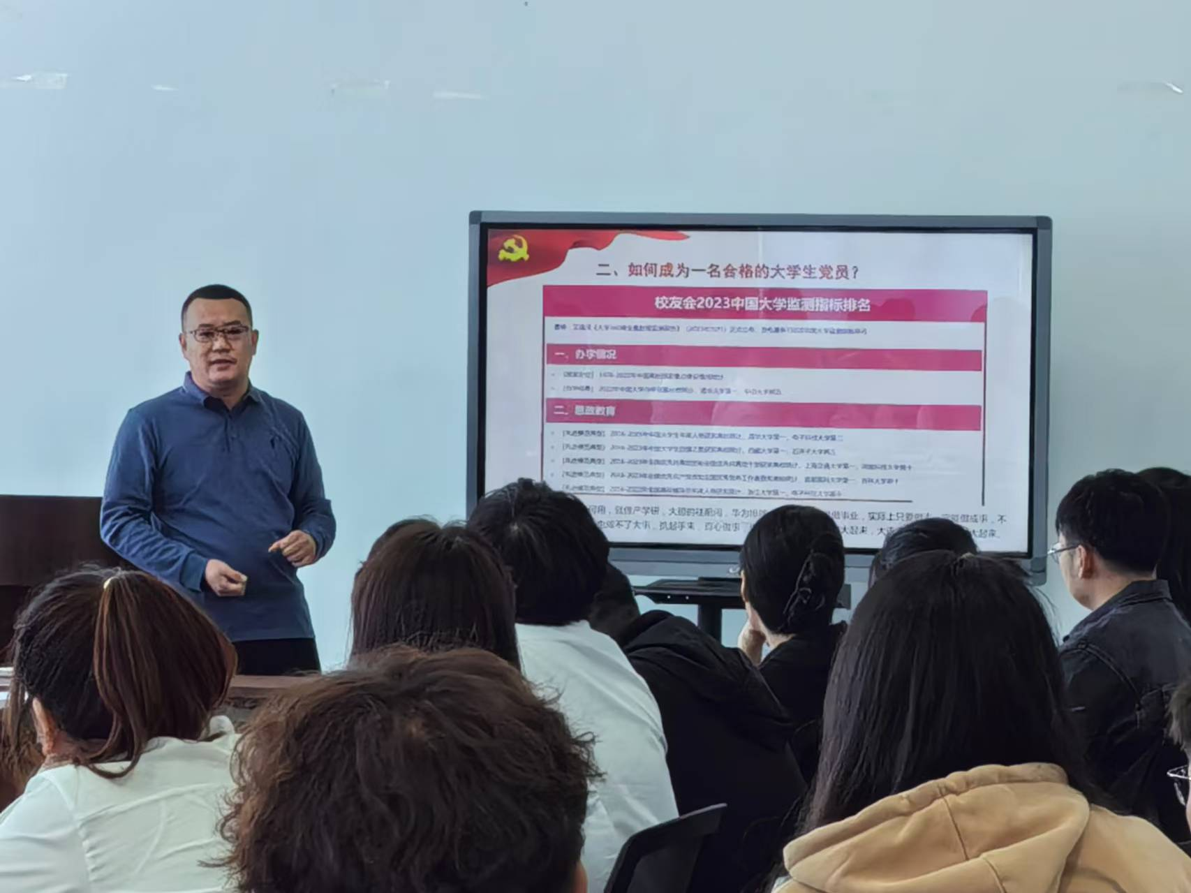 开班仪式后,王建东《以实际行动争做一名合格大学生党员》为题,为全体积极分子上了一堂生动的专题党课。他从什么是中国共产党、如何加入中国共产党、如何成为一名合格的大学生党员等方面进行了深入浅出的讲授。他强调入党积极分子要端正态度,以身作则,在思想上坚定理想信念、在学习上勤奋好学、在工作中担当有为。