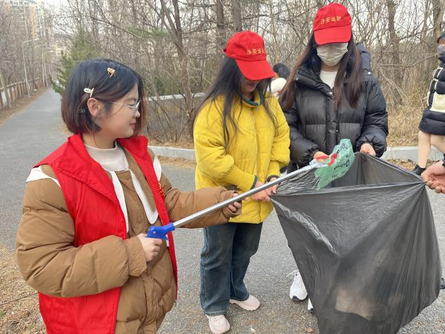 过程中,社区主干道的绿化带区域是此次清理的重点。志愿者们手持垃圾捡拾器,分工明确,配合默契。他们搜索着隐藏在草丛中的各类垃圾,如废弃的塑料瓶、包装袋、烟头、落叶等,一一拾起后放入垃圾袋中。