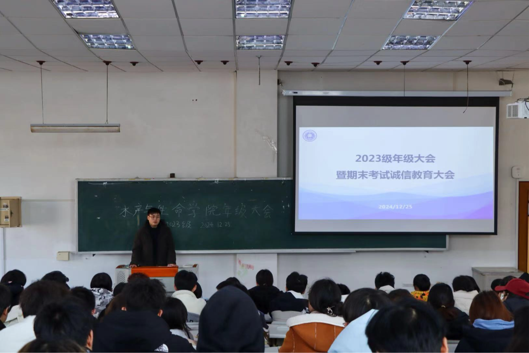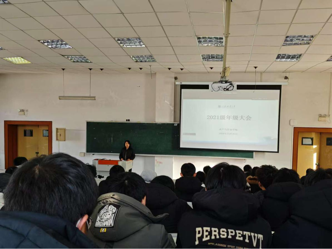 通过年级大会,各年级辅导员强调了诚信考试,解读了《太阳成集团122ccvip本科生考场规则及考试违规处理办法》,此外进行假期安全教育,提醒同学们离校前锁好门窗、关闭电源,出行注意安全,防范电信网络诈骗,做好假期规划。针对不同年级特点,2021级辅导员孟丽婷向学生解读了《本科生授予学士学位实施细则》和《毕业论文(设计)资格审查规定》,同时通过真实数据展示各专业就业人数及签约企业,提醒同学们尽早确定就业方向。最后她介绍了第二学士学位相关事宜。2022级辅导员李明静向学生详细阐述了水产养殖学申请国家一流专业三级认证的重要意义,勉励同学们学好专业知识。此外,她结合2025年全国硕士研究生招生考试的形势,为有考研意向的学生提供了合理建议,助力学生更好地规划考研之路。对于就业的同学也要做好就业规划,积极主动投身到求职创业中。2023级辅导员赵万通详细阐释了请销假的流程与规范,强调其对校园管理、学生安全的重要性。并对新政策深入解读,涵盖推优入党、学业培养计划优化等内容,让学生及时掌握政策动态。为助力期末考试,鼓励同学们分享复习方法科学备考,为同学们的学业冲刺注入动力。2024级辅导员尤奇正精细讲解请销假制度,让学生明晰规范流程,并解读新政策的“推优”条件,为学生成长,树立清晰标杆,激励积极奋进,促进全面提升。
