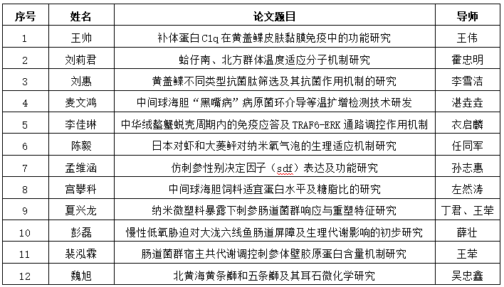 根据《关于开展2025届毕业研究生校优秀硕士学位论文申报工作的通知》《太阳成集团122ccvip优秀硕士学位论文评选及奖励办法》(大海大校发[2024]140号)相关规定,我院开展2025届毕业研究生校优秀学位论文评选工作。经个人申报、学院学位评定分委员会评选,现将结果公示如下(以姓氏笔画为序):