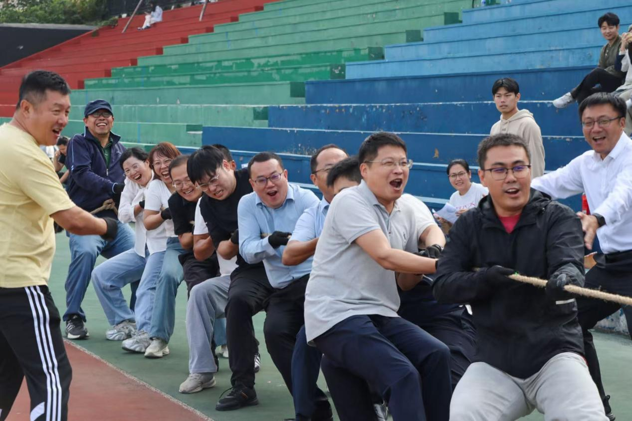 随着裁判一声哨响,比赛正式拉开帷幕。霎时间,加油声、呐喊声、欢呼声此起彼伏,响彻云霄。参赛队员们个个斗志昂扬,紧握长绳,脚蹬地面,身体后倾,将全身的力量贯注于一根绳上。尤其是在教师队伍与研究生的对抗中,平日里在讲台上循循善诱的老师们和实验室里潜心钻研的学长学姐们,此刻都化身成为全力以赴的“运动员”,双方你来我往,僵持不下,将比赛推向一个又一个高潮,赢得了现场观众的阵阵喝彩。