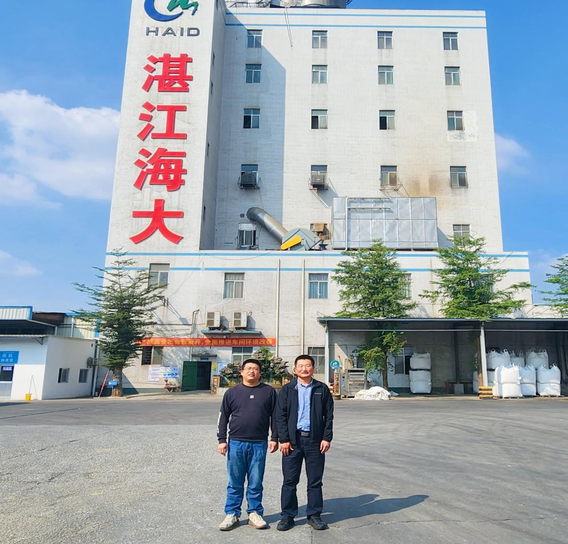 在湛江海大饲料有限公司,左然涛不仅了解了企业在水产饲料方面的成果、人才需求等,同时还看望了在此就职的2025届毕业生宫攀科,详细了解了其工作适应情况、职业发展进展及岗位成长情况。