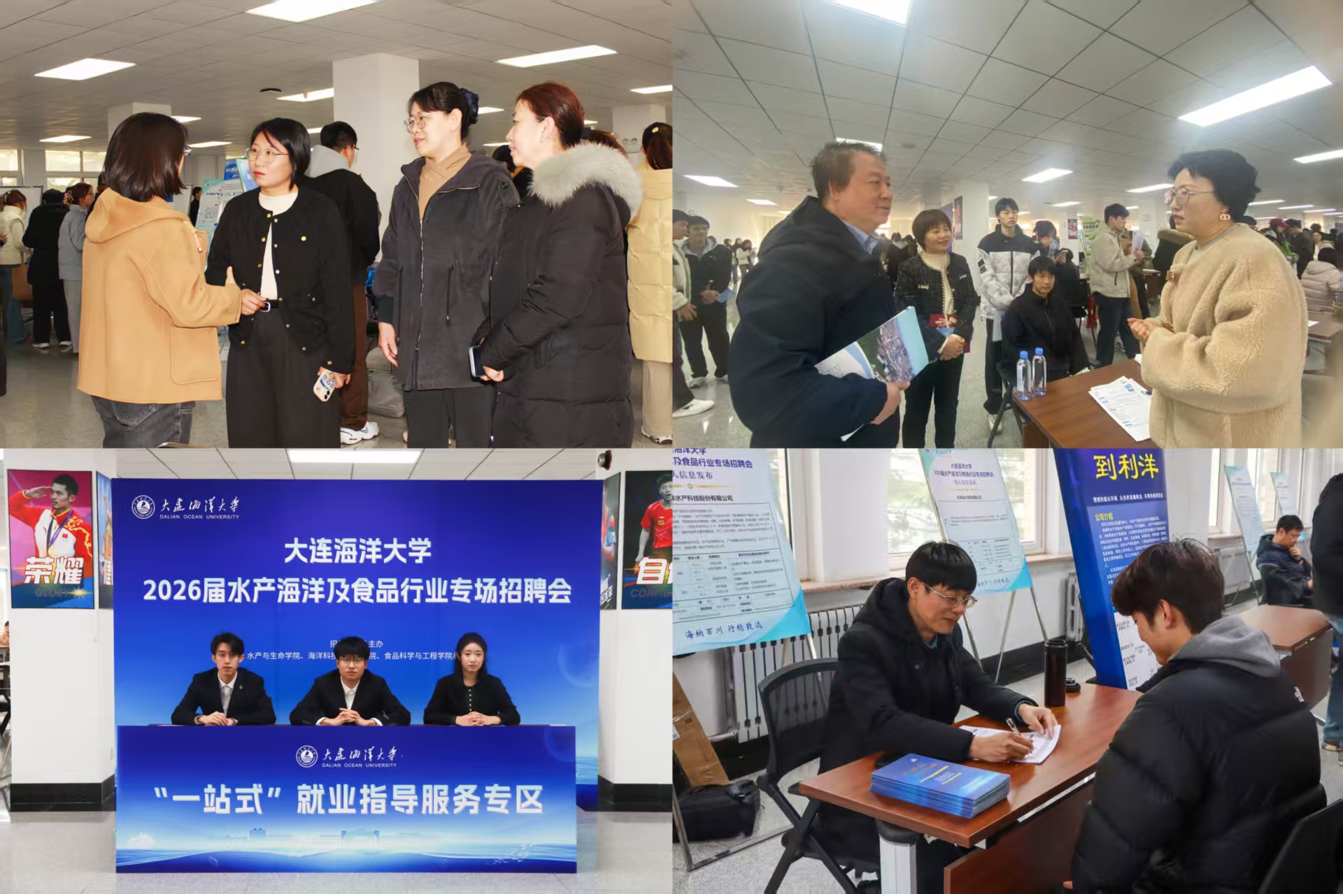 本次招聘会共吸引广东利洋水产股份有限公司、盘锦光合蟹业有限公司、江苏同瑞环保有限公司、大连瑞驰企业集团有限公司等47家行业优质企业参会,提供岗位500余个。岗位设置紧密结合学校相关学院专业特色与人才培养方向,涵盖了水产养殖、海洋科学、食品工程等多个领域。招聘会现场气氛热烈,学生积极与企业负责人沟通,围绕岗位要求、职业发展路径、实习培训机会等进行深入咨询,展现出良好的专业素养与求职热情。